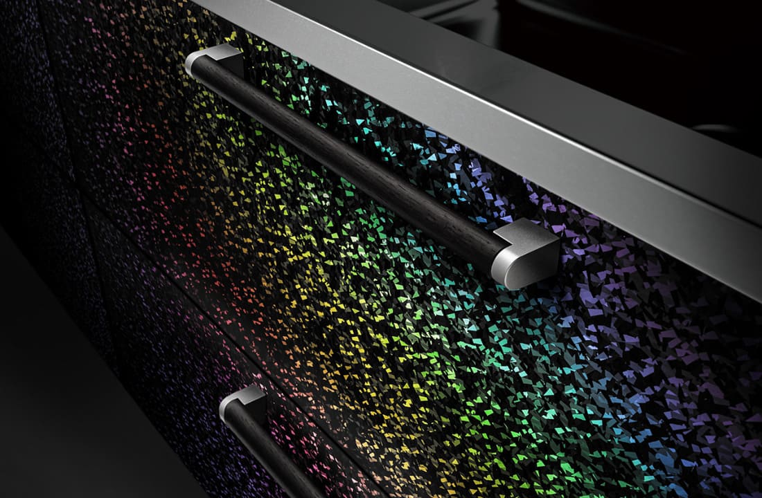 全面を彩る大柄で色とりどりの粒子が、インテリアを一新させます。見る角度によって粒子が動き出し、幻想的な世界を映し出します。