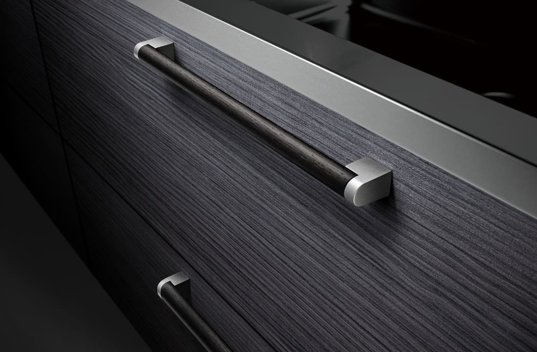 ダークな木目調のキッチンの扉は、洗練された雰囲気やモダンなデザインを演出します。照明や陽の光の当たり方によって質感が強調され、キッチン全体が魅力的な空間になります。