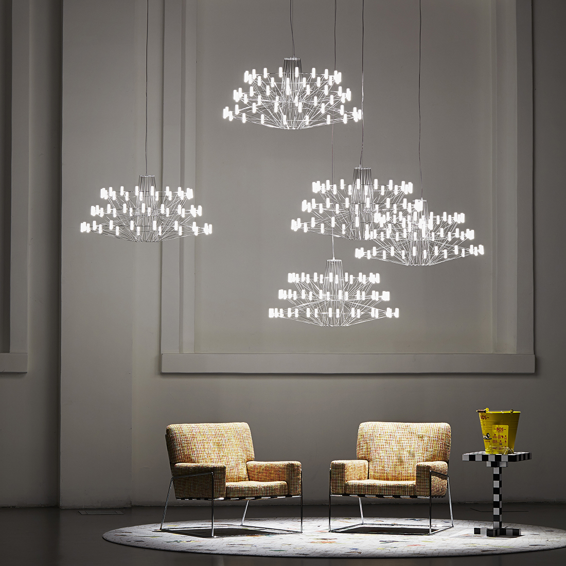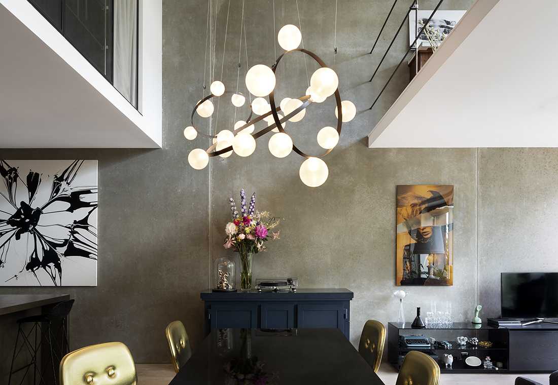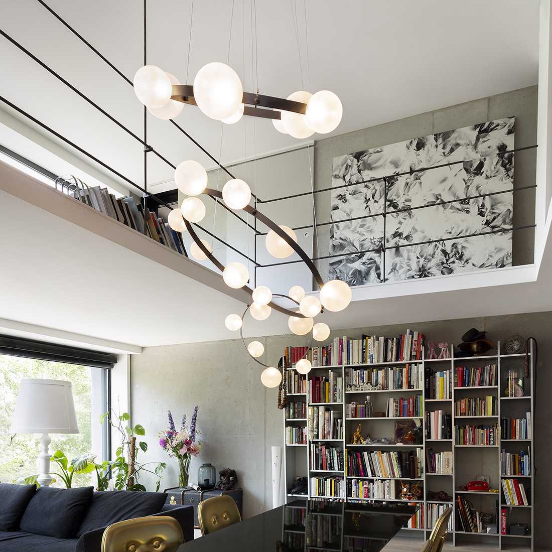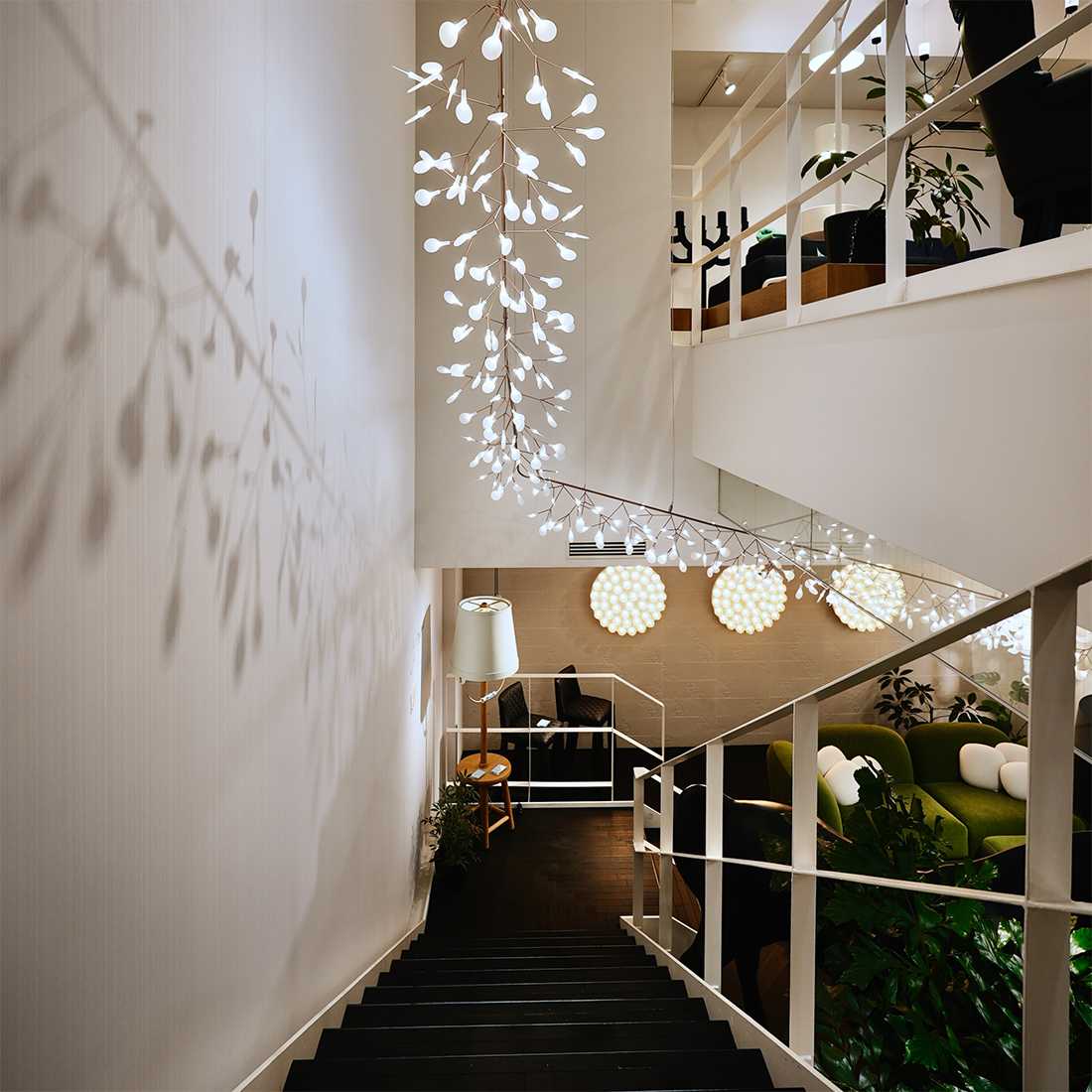 吹き抜けに吊る、憧れの照明として注目されている「レイモンド」。moooiの代表的な商品です。