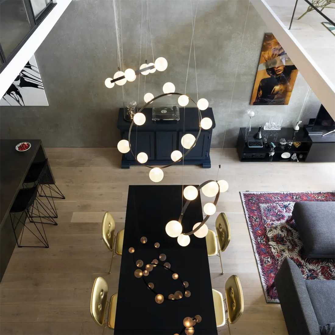 垂直にも水平にも自由な角度で設置可能なリングは、空間のボリュームに合わせたリッチなレイアウトが楽しめます。リビングルームやダイニングルーム、エントランスホールなど、どんな空間にもぴったりです。