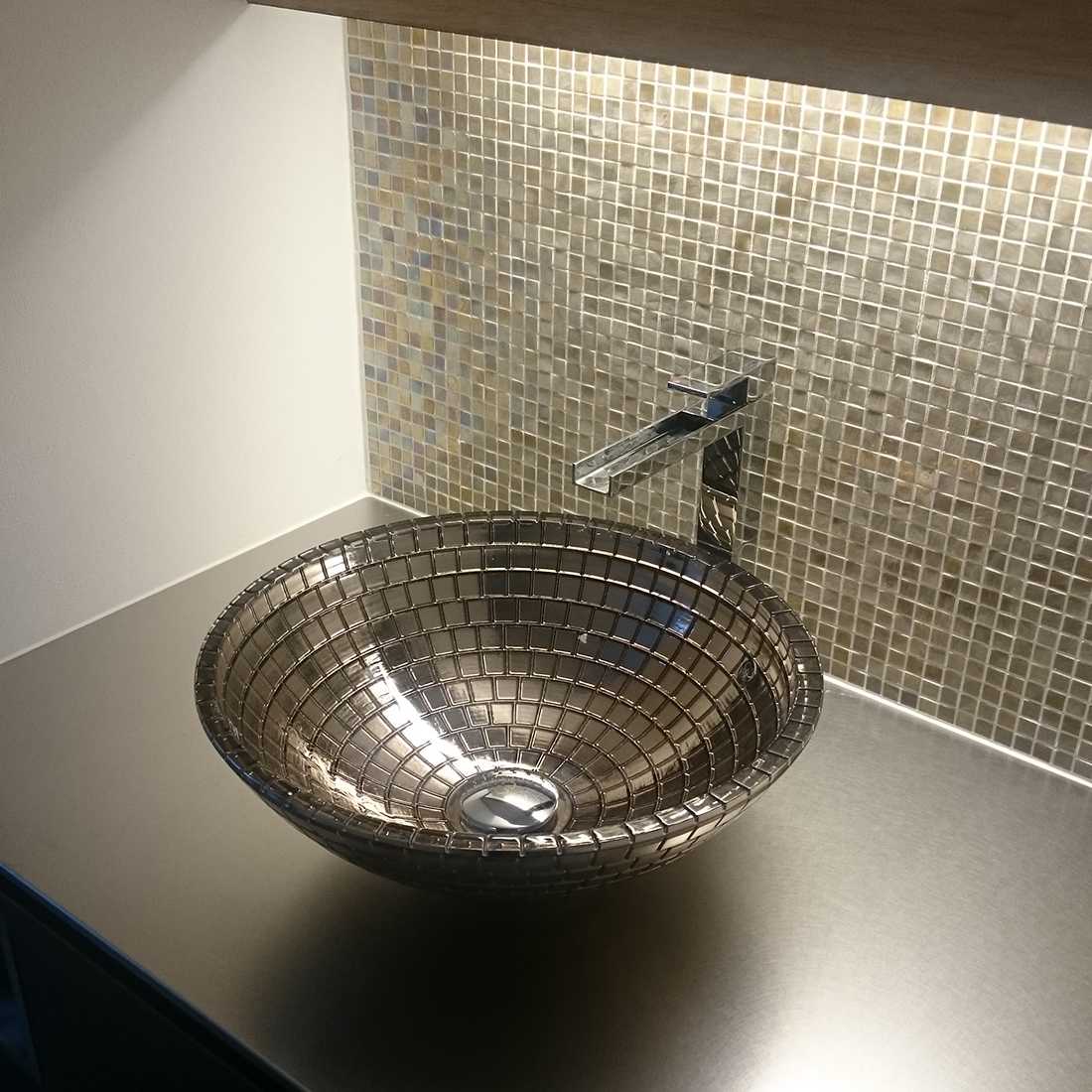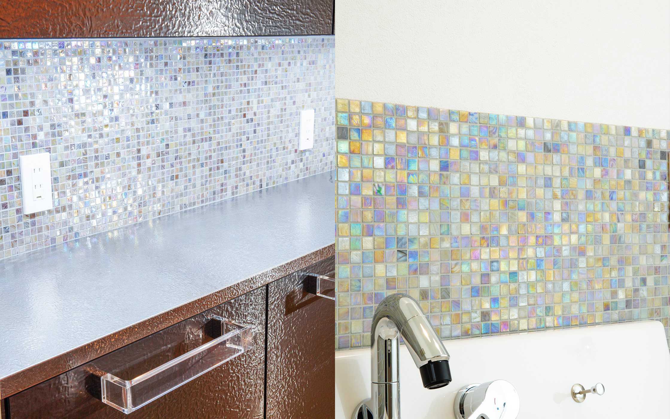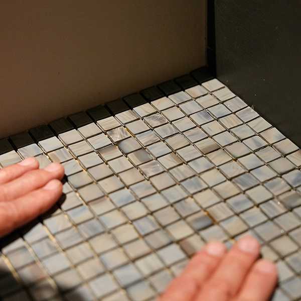 タイル施工は、タイル屋さんにお任せするのが一般的です。中には、ヴェネツィアンモザイクタイルを扱ったことがないために施工が難しいと考える方もいるかもしれませんが、基本的なポイントを押さえれば、一般的なタイルと変わりません。施工については、まずは工務店にご相談ください。