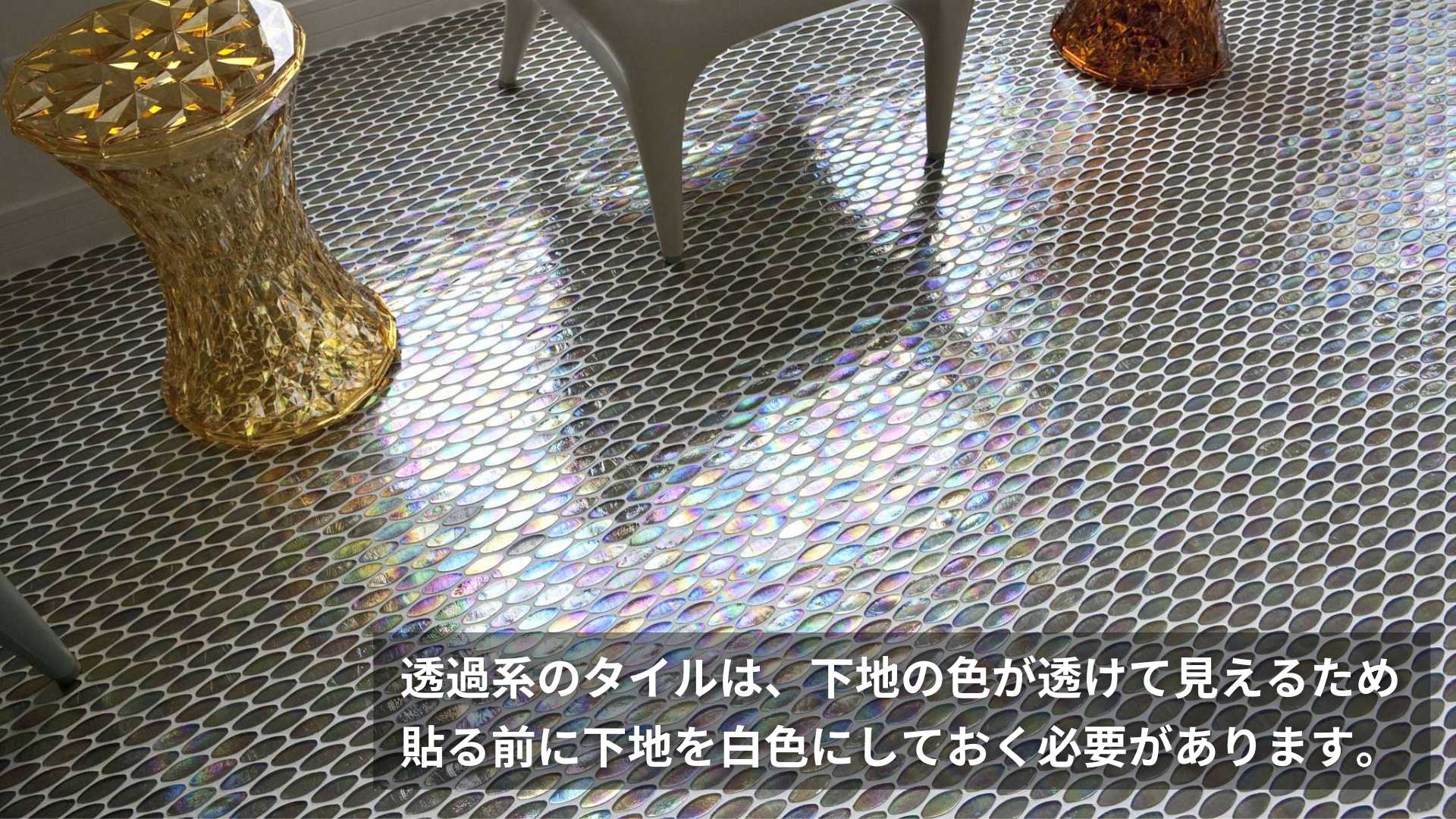 ヴェネツィアンモザイクタイルとはいえ、施工手順は一般的なモザイクタイルと同じです。
