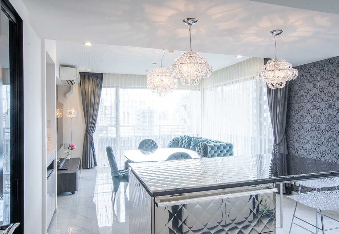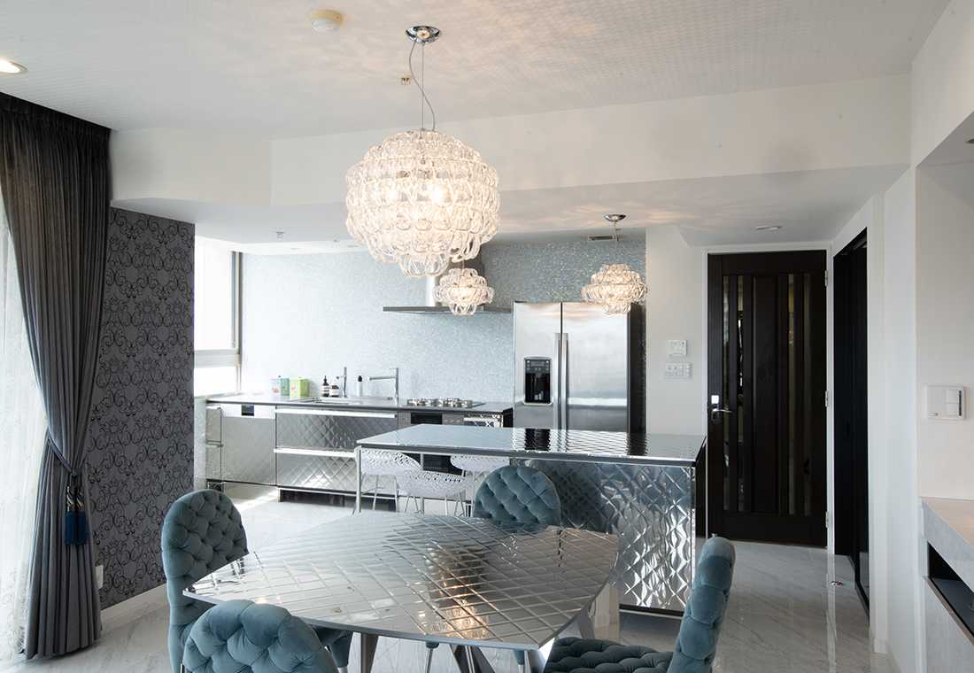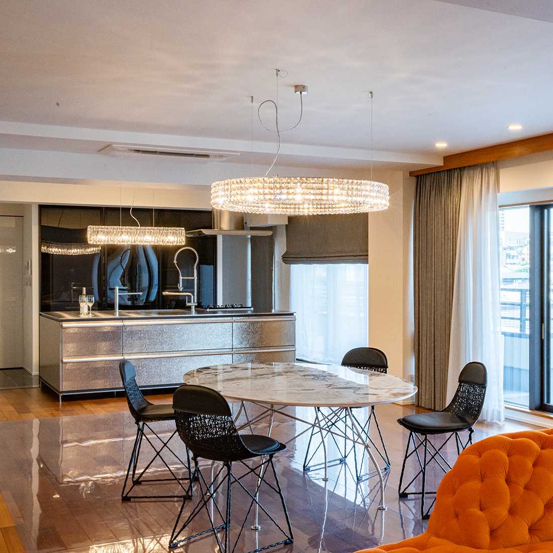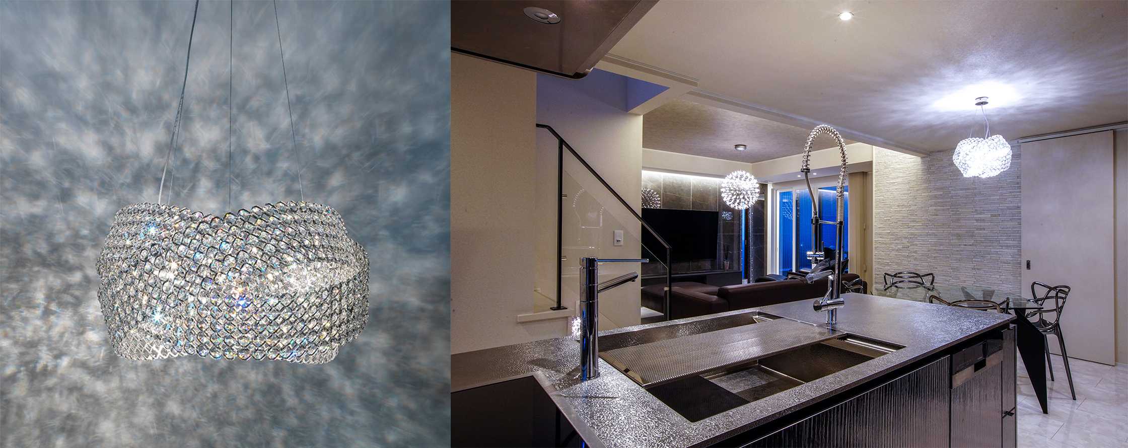 アイランドキッチンやダイニング等さまざまな場所で優雅な輝きを放ち、空間全体に上品な印象を与えます。