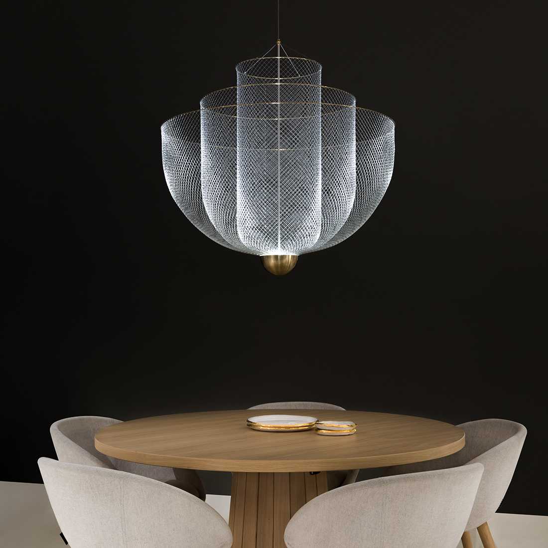 未来の輝きと懐かしさが交差する、時を超えた美しさを放つシャンデリア。