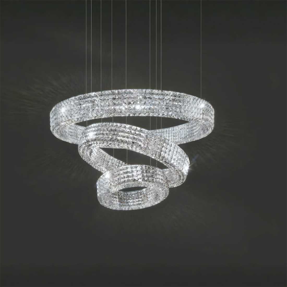3つの異なるサイズバリエーションを複数組み合わせることで、自分だけの空間を創ることができます。広がりのある組み合わせや、軸を斜めにして動きを出したり、リングを複雑に重ね合わせて光の密度を高めたり。複数の組み合わせバリエーションは無限の可能性があります。