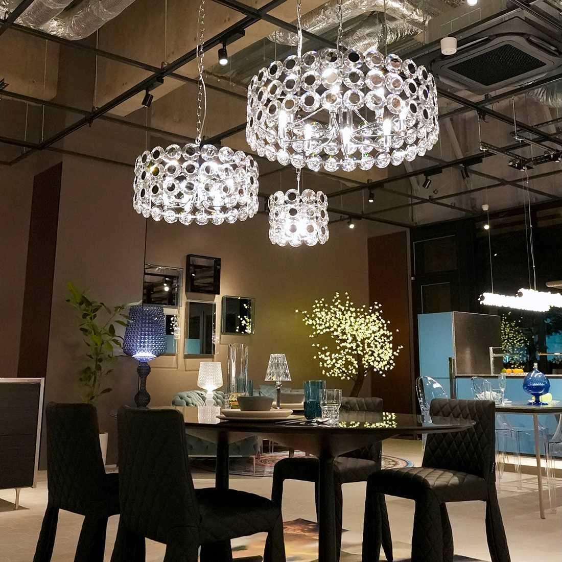 視線が通るデザインのシャンデリアを選ぶことで、部屋に与える圧迫感を抑えることができます。