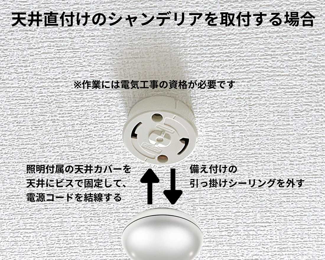 直径50cmの比較的コンパクトなサイズのシャンデリアながらも、一灯でも十分な存在感です。