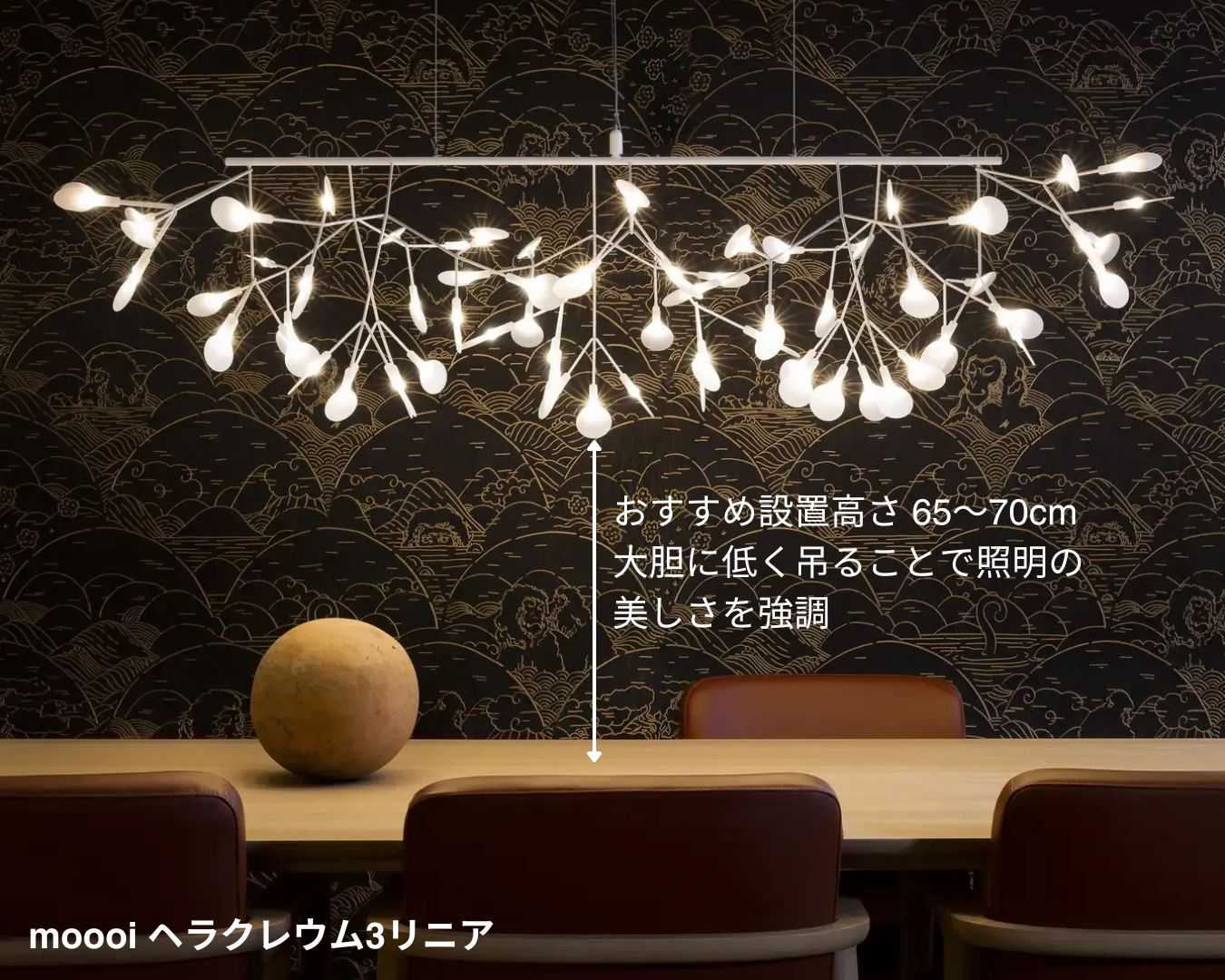 ヘラクレウムは、セリ科の多年草「ヘラクレウム」の繊細で可憐な花がデザインモチーフになっています。枝の先端に咲く小さな花弁を、LED光源と丸いディフューザーで再現されています。