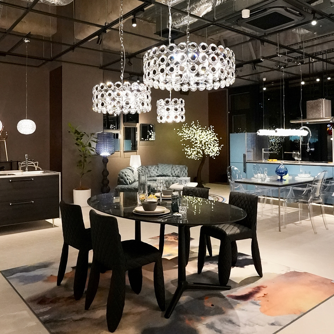 ジョガーリ35SPは直径37cmの小ぶりなシャンデリア。複数灯並べたり、サイズが異なるジョガーリ50Sと組み合わせることで統一感のあるインテリアを叶えます。