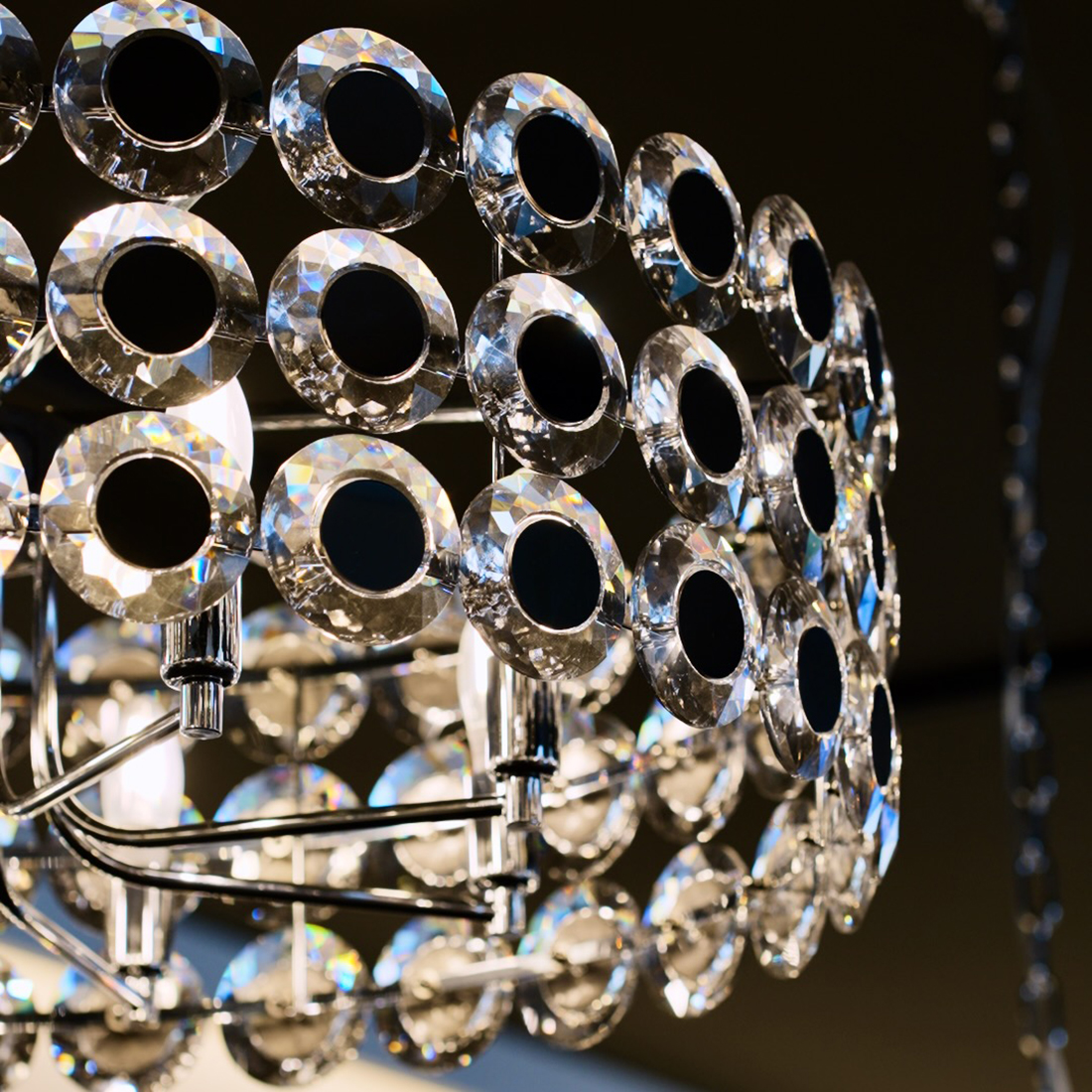 このモダンでありながら、どこか懐かしさを感じるデザインは、光を様々な角度から反射し、空間に華やかな輝きをもたらします。