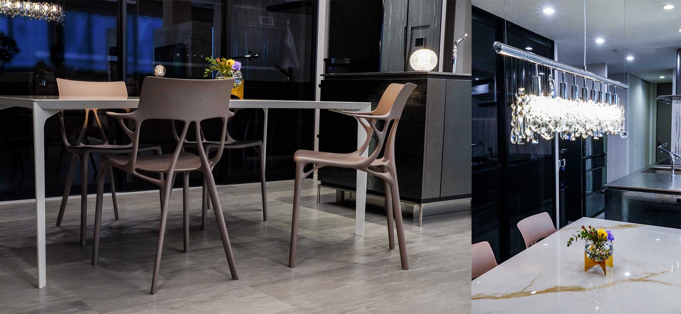 照明:クランカーLED120、プラネットスタンドハイ(Kartell)