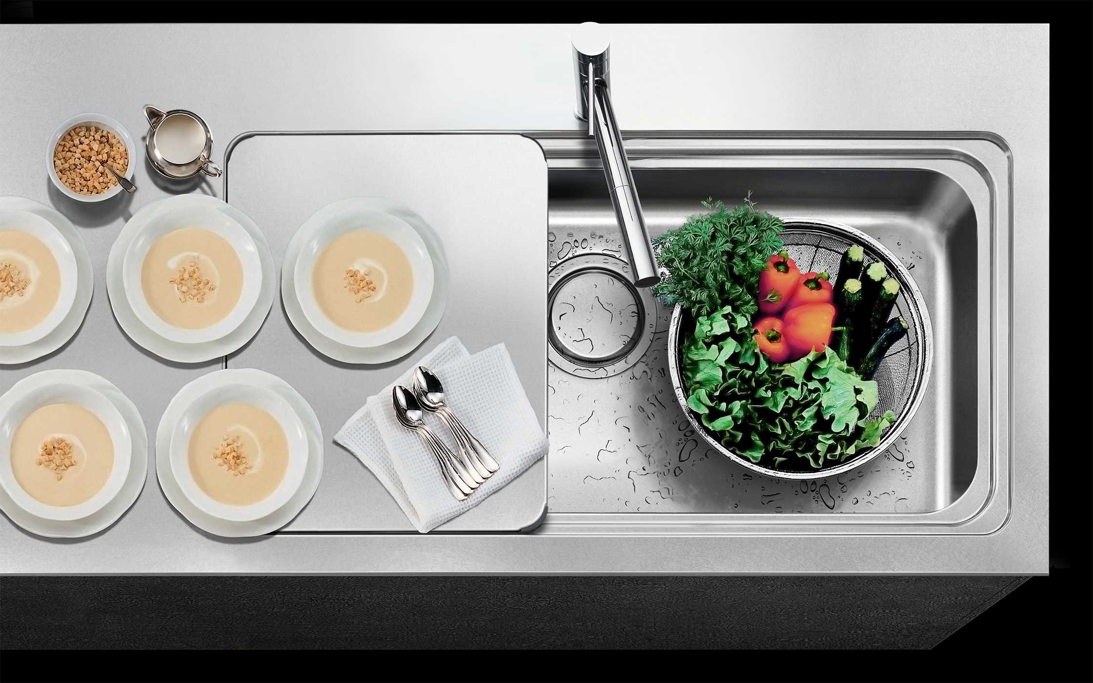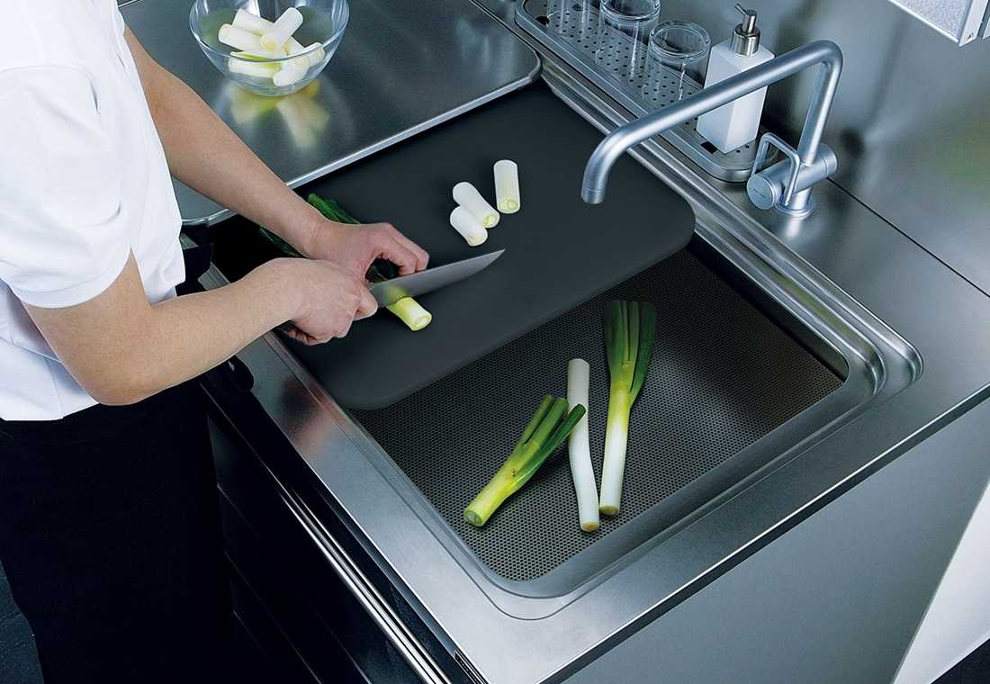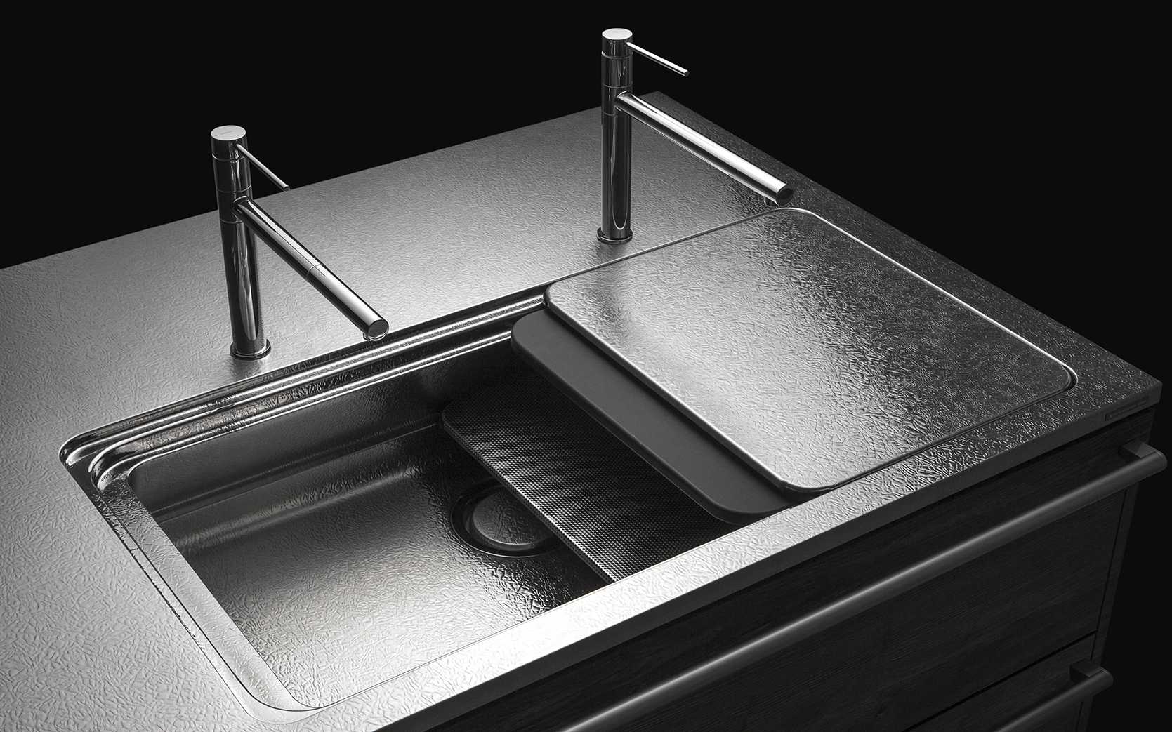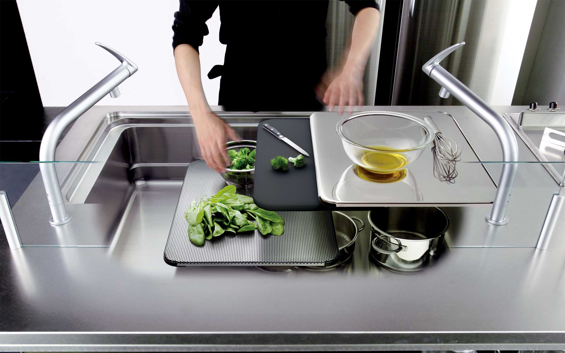 3層構造で立体的な作業を可能にし、野菜を洗う、お肉を切る、盛りつける、などの加熱調理以外の作業がシンク内で行えます。