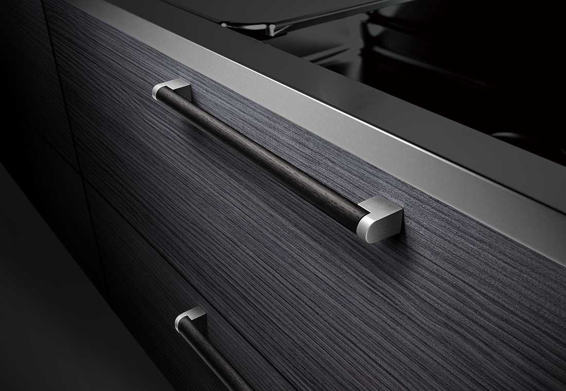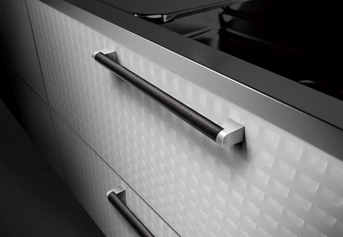 「アルミデザインウォール」はハンドル付きのアルミ製サイドパネルで、縦に入ったスリットがシャープな印象を与えます。唯一無二のデザインのキッチンをお求めの方におすすめです。