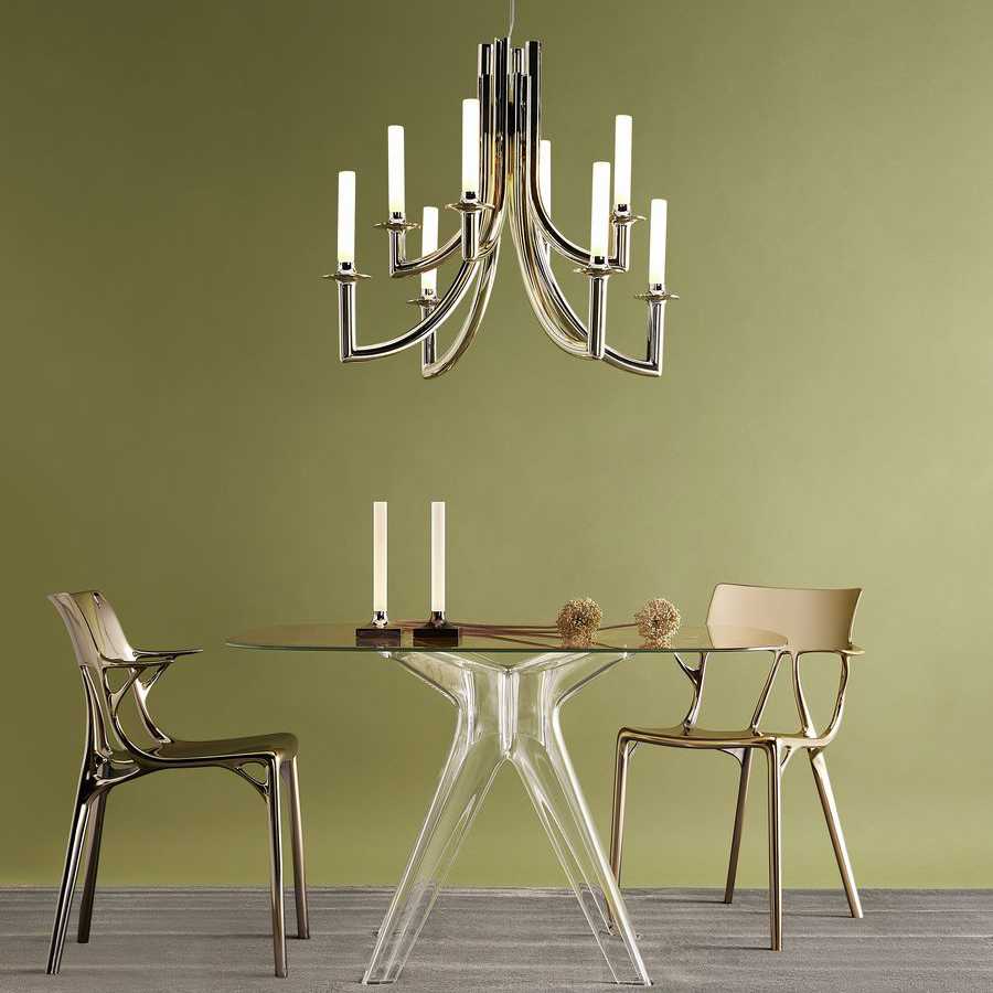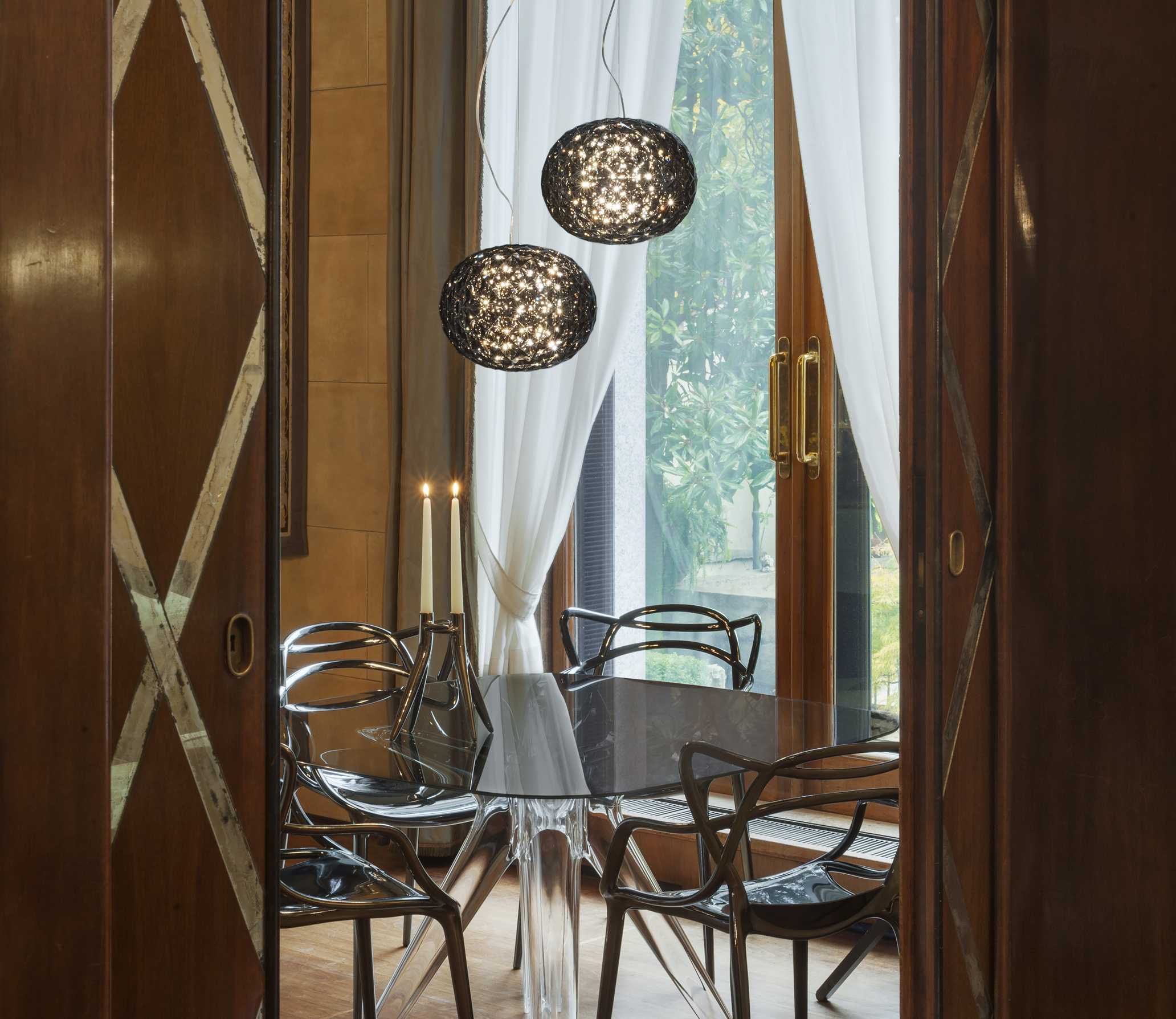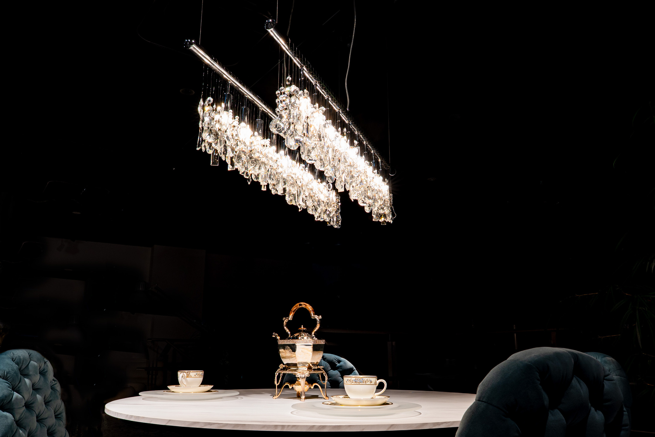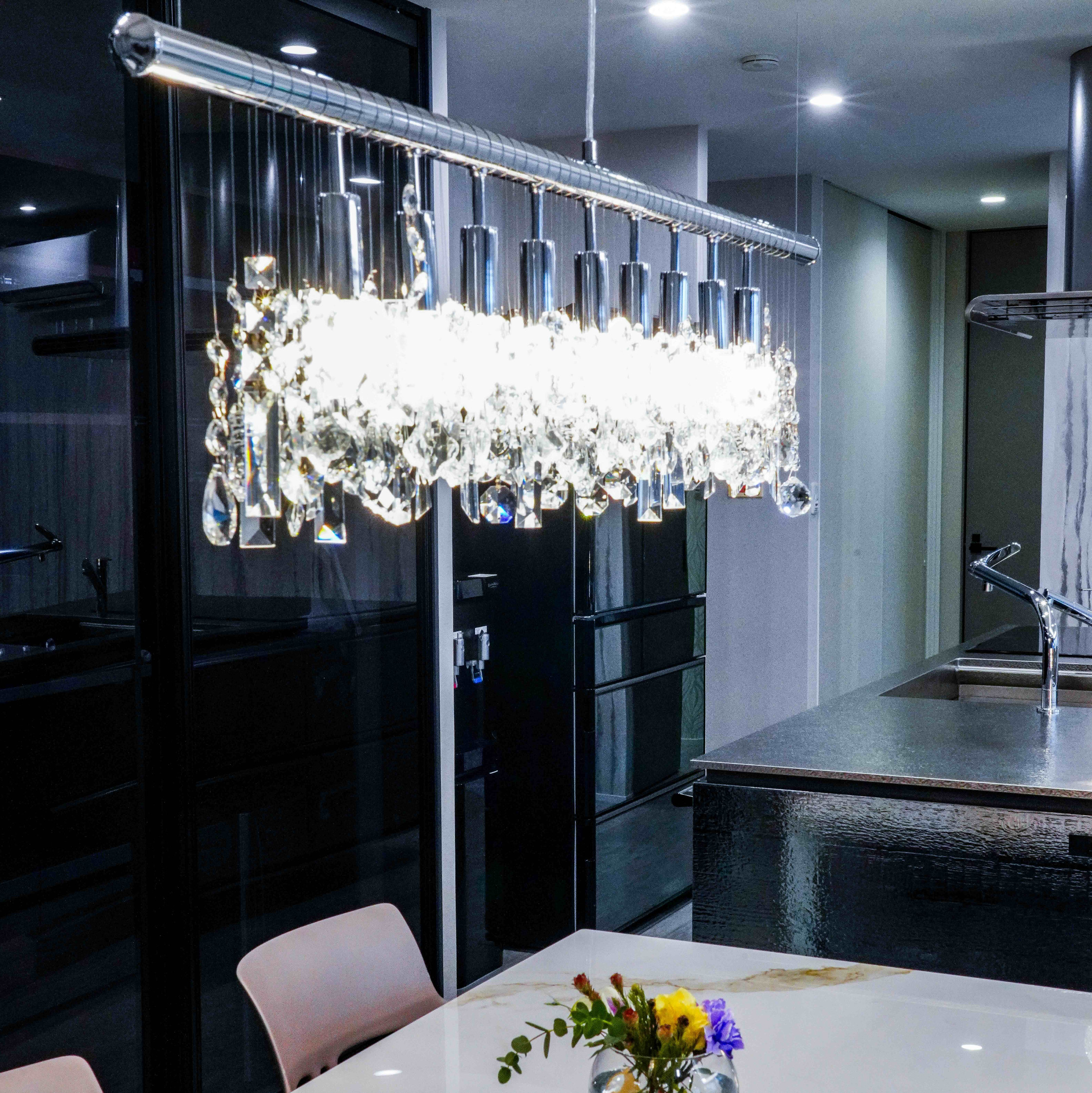 伝統的なモチーフをしたクリスタルガラスのオーナメントが光を美しく反射し、ダイニング空間を一層華やかに演出。 シャンデリアの豪奢な輝きを楽しみたい方におすすめのペンダントライトです。そのデザインは、エレガンスとモダンが融合し、ラグジュアリーな空間にぴったり。 食卓を囲む時間を、より特別なものへと変えてくれます。
