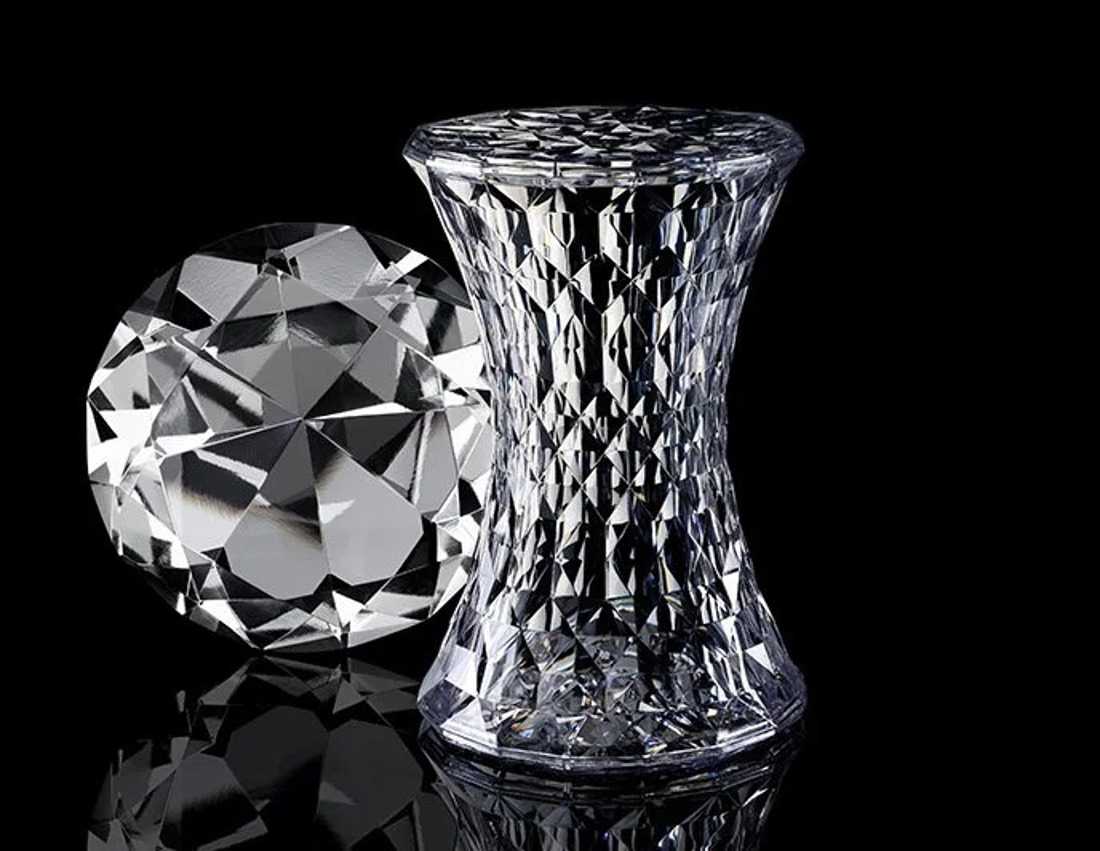 「ストーン」はキラキラ光を受けて輝くダイヤモンドをイメージしてデザインされています。当時軽くて丈夫なのにガラスのように透明な樹脂ポリカーボネートを切り口に多くのアイテムを展開して人気を博していた素材のスペシャリストKartell|カルテル。その素材の魅力を最大限に引き出すこと、そして自らデザインの使命としている愛と情熱が感じられること、その結果生まれたのがこの「ストーン」です。