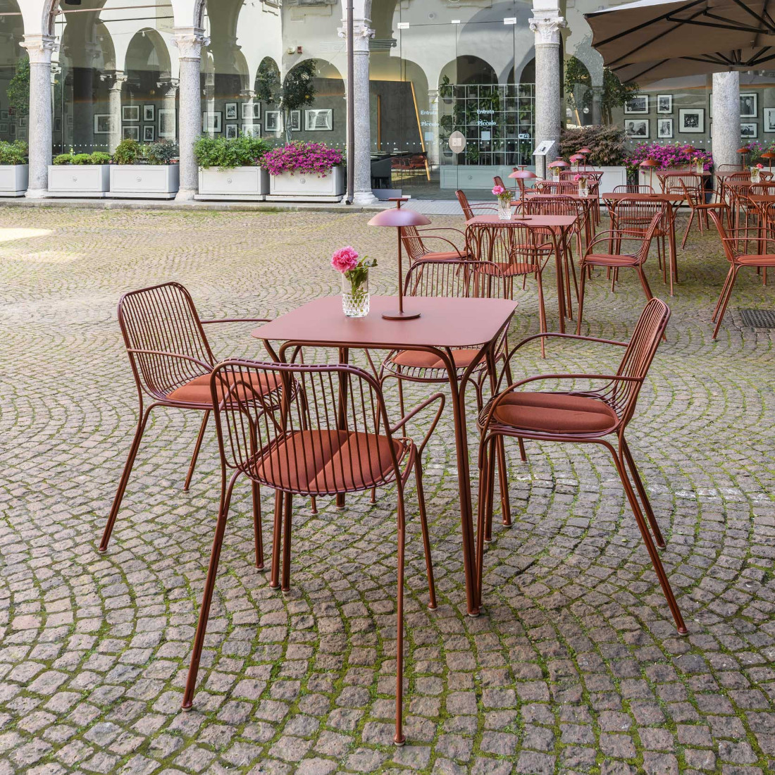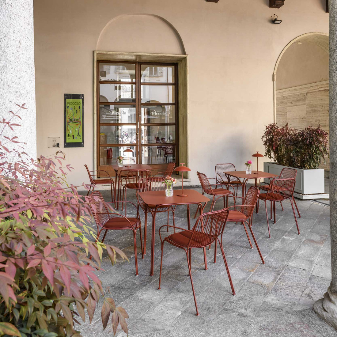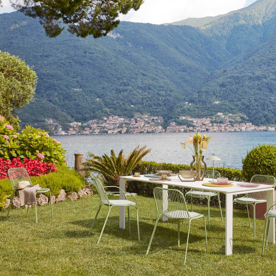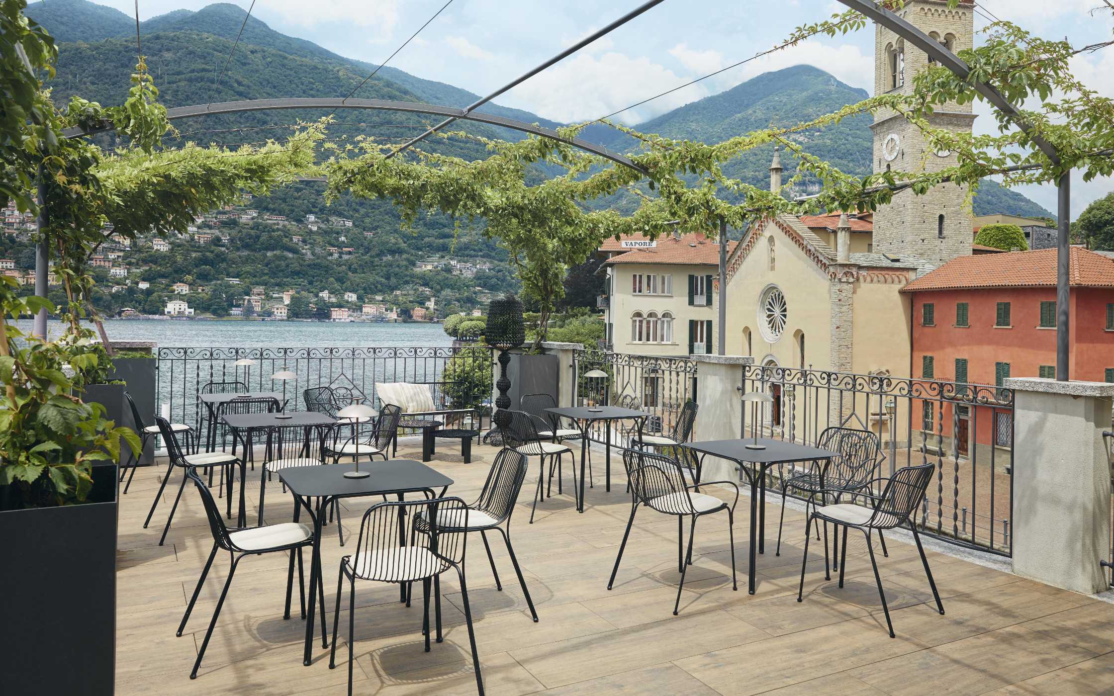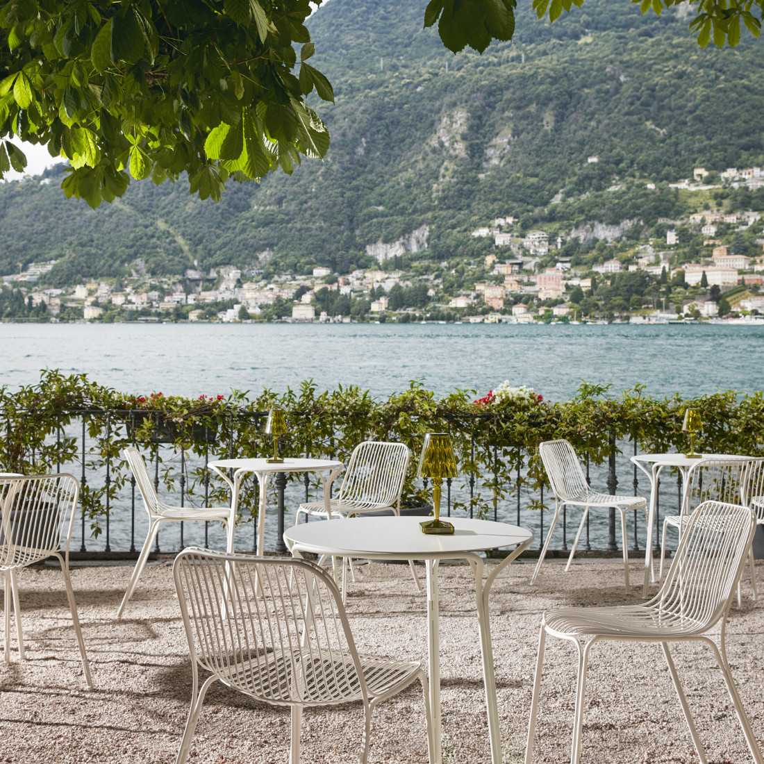 また、コモ湖を訪れる多くの人々に愛されるレストラン「Vapore」のテラス席には、多数の「ハイレイ」ファミリーが軽やかに佇みます。美しいフォルムと安定感のあるデザインは、湖畔の爽やかな風とも相性が良く、リラックスした時間をより豊かに演出しています。
