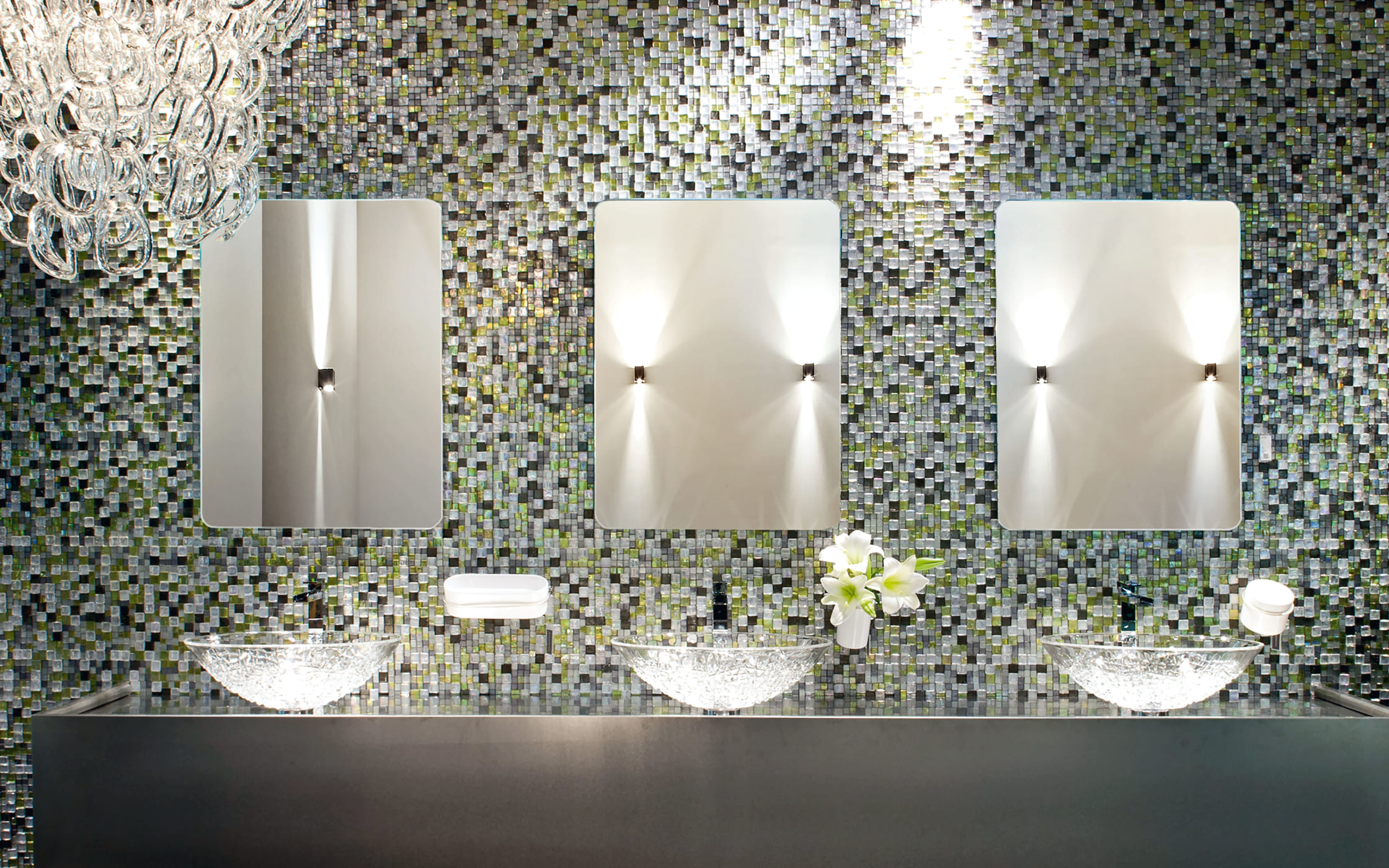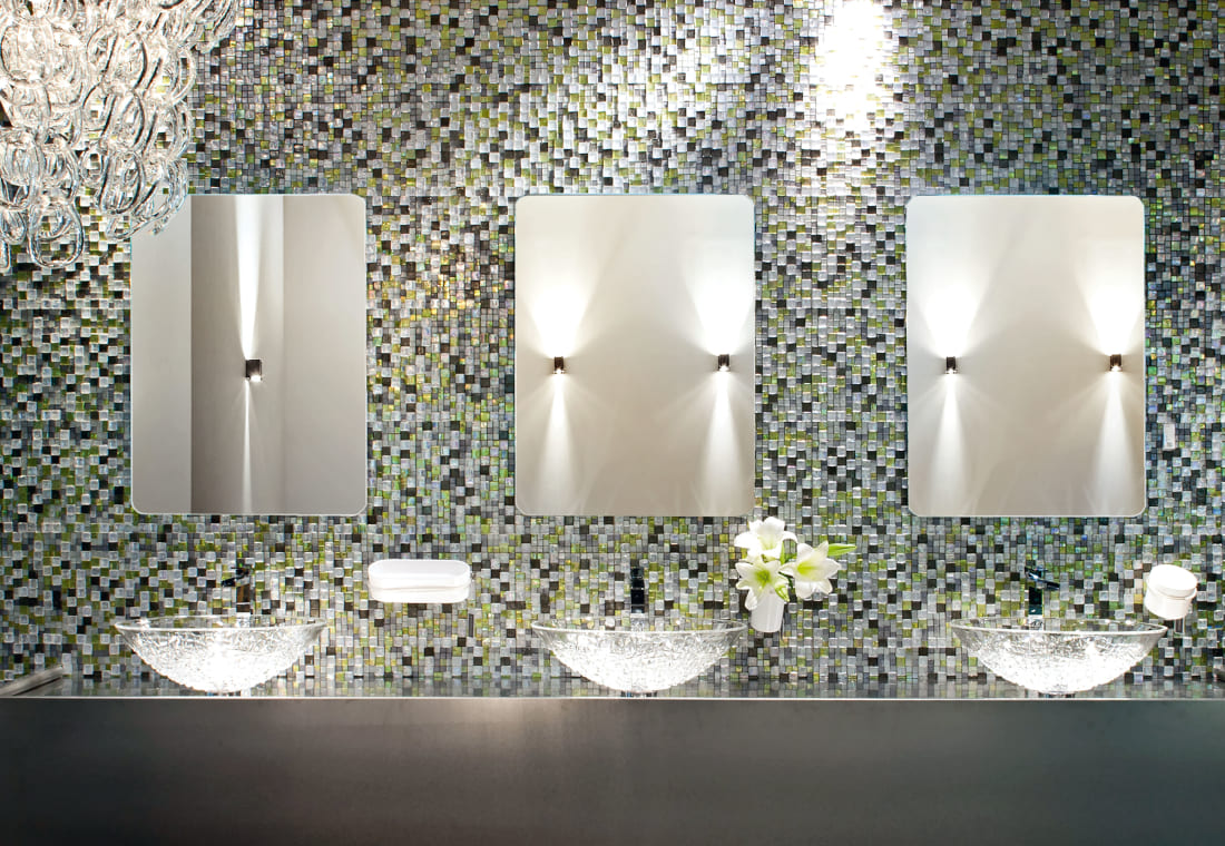 グリーンとクリアなモザイクを掛け合わせた宝石のような煌めき。気品に満ちた、瑞々しい空間を演出しました。