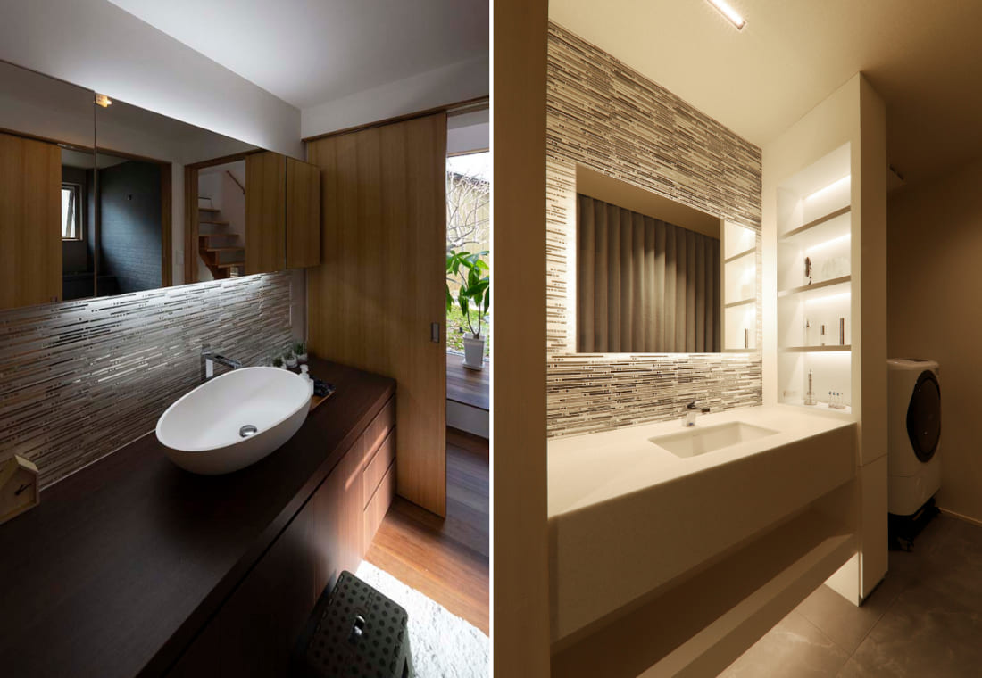 横に並べることで水平ラインが際立ち、空間に広がり感と、整然とした美を演出。静かな色彩の躍動で、唯一無二の洗面空間となります。