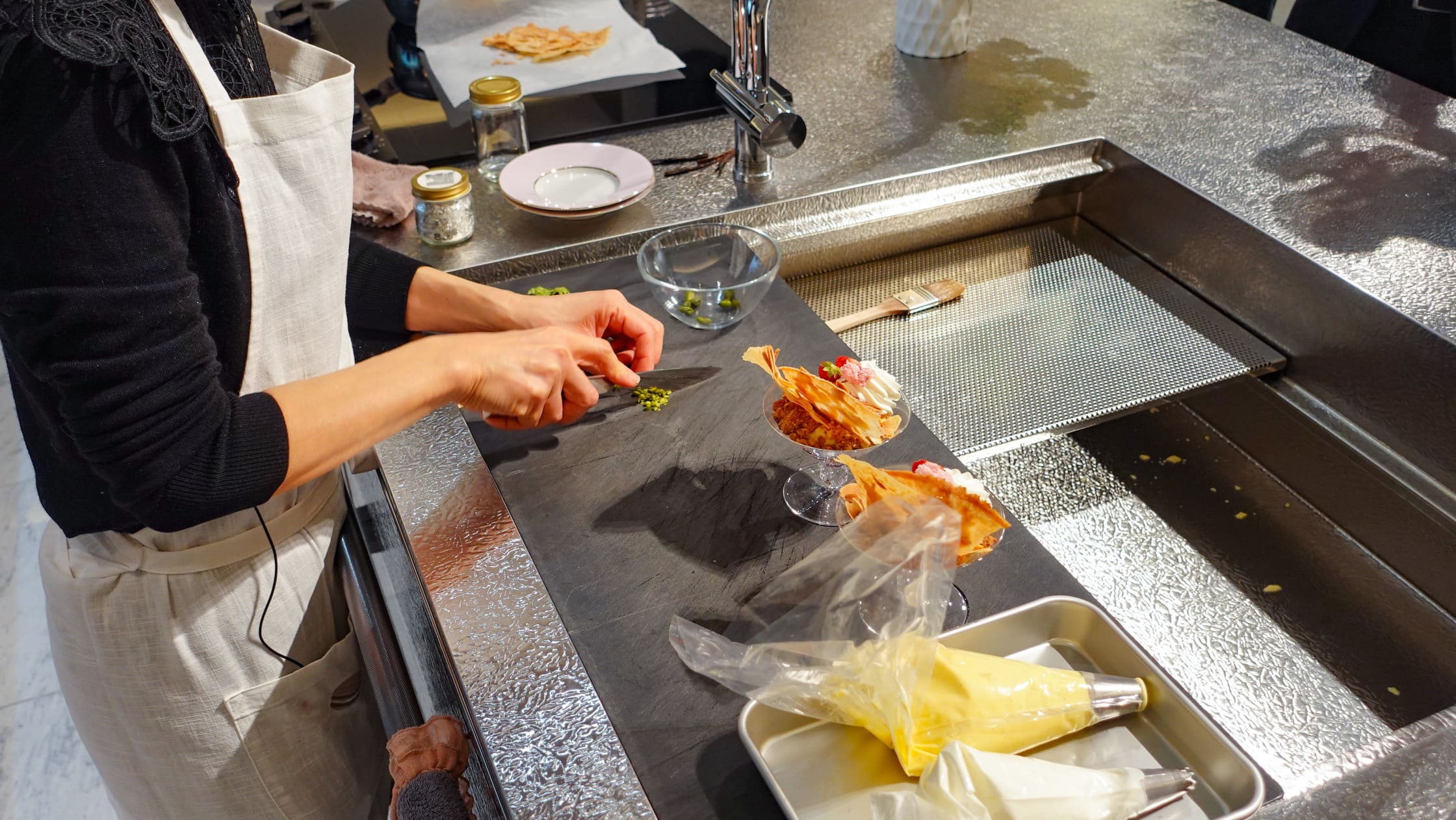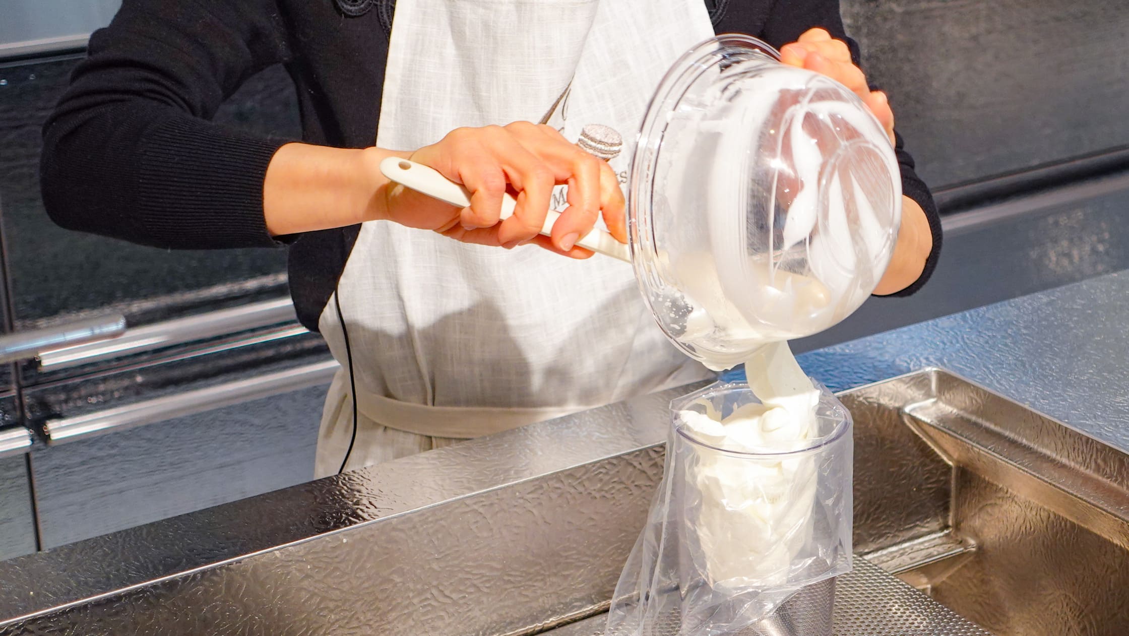 今回は、いちごとクリームを重ねて作る、春を待つグラスデザート。グラスの中に、季節のうつろいを重ねていきます。