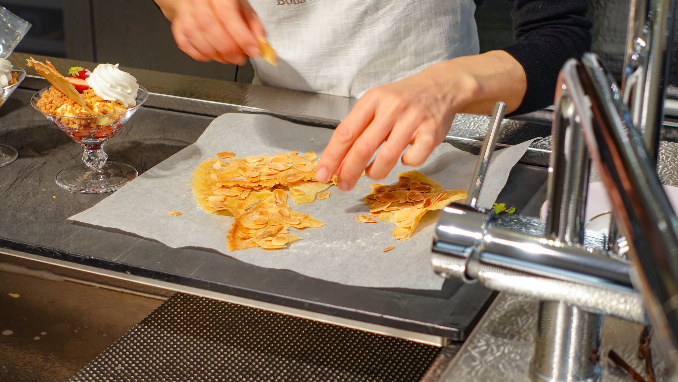 1. いちごはヘタを取り、4~8等分にし、お好みでキルシュを少々ふりかけてしばらく置く。