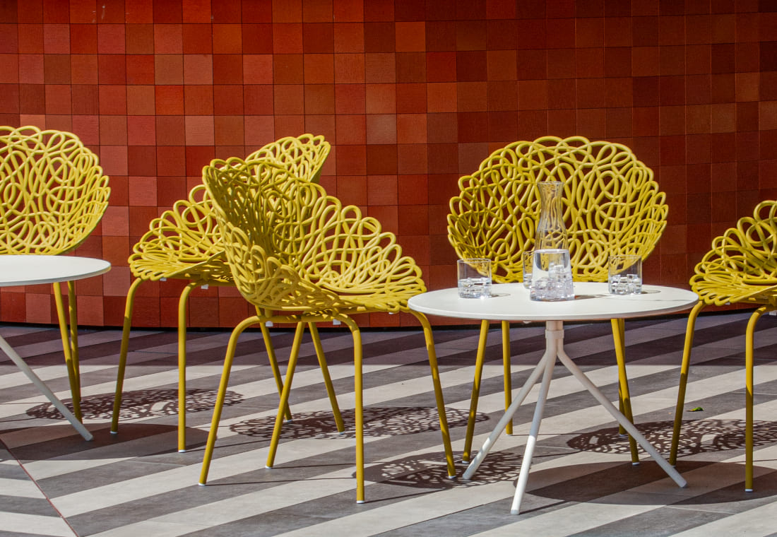 世界的に有名なブラジルのデザインユニット「スタジオカンパーナ」とコラボレーションしたチェア。ポルトガル語のスラングで「イケてる」「かっこいい」を意味するこの名前の通り、ねじれたような形と絡み合う曲線は、彼らのデザイン言語そのものです。屋外使用にも対応し、テラスやカフェ空間にも映えるデザイン。スタッキング可能で収納性も高く、機能性と芸術性も兼ね備えています。