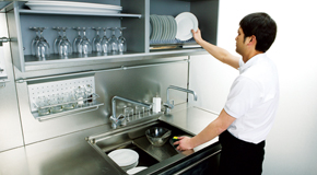 ON WALL非常适合专注于烹饪的顾客。采用了站着半径75cm以内全部触手可及的“零动线”设计,完全颠覆了迄今为止的壁橱形象。